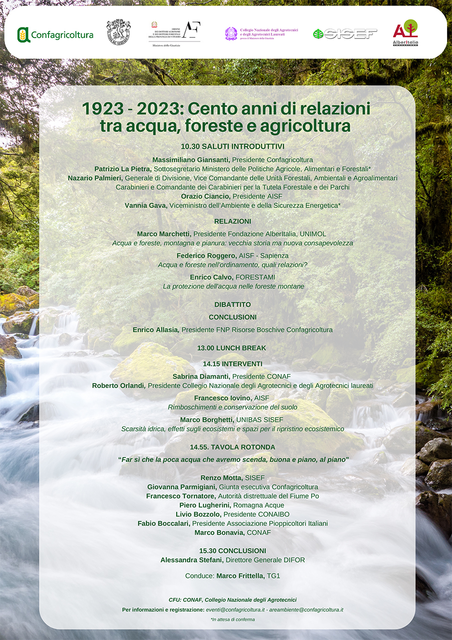Nel 1923, il Regio Decreto 30 dicembre n. 3267 ‘Riordinamento e riforma della legislazione in materia di boschi e di terreni montani’, noto come Legge Serpieri, offrì una prima sistemazione organica delle diverse disposizioni in materia forestale. L’obiettivo era coniugare l’attenzione all’economia montana con la necessità di difendere il suolo e il territorio per la vita delle comunità, valorizzando anche le nuove istanze, come il turismo nelle aree interne. Nel centenario della Legge Serpieri, Confagricoltura propone una riflessione sulle attuali priorità nel rapporto tra campagna e foreste, pianura e montagna, identificando nella risorsa acqua il filo conduttore, alla luce delle mutate condizioni ecologiche, sociali ed economiche, e della forte espansione della superficie boschiva nel corso di un secolo.