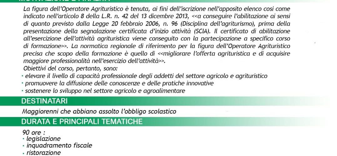 A settembre parte la II edizione del corso per diventare operatore agrituristico: aperte le iscrizioni