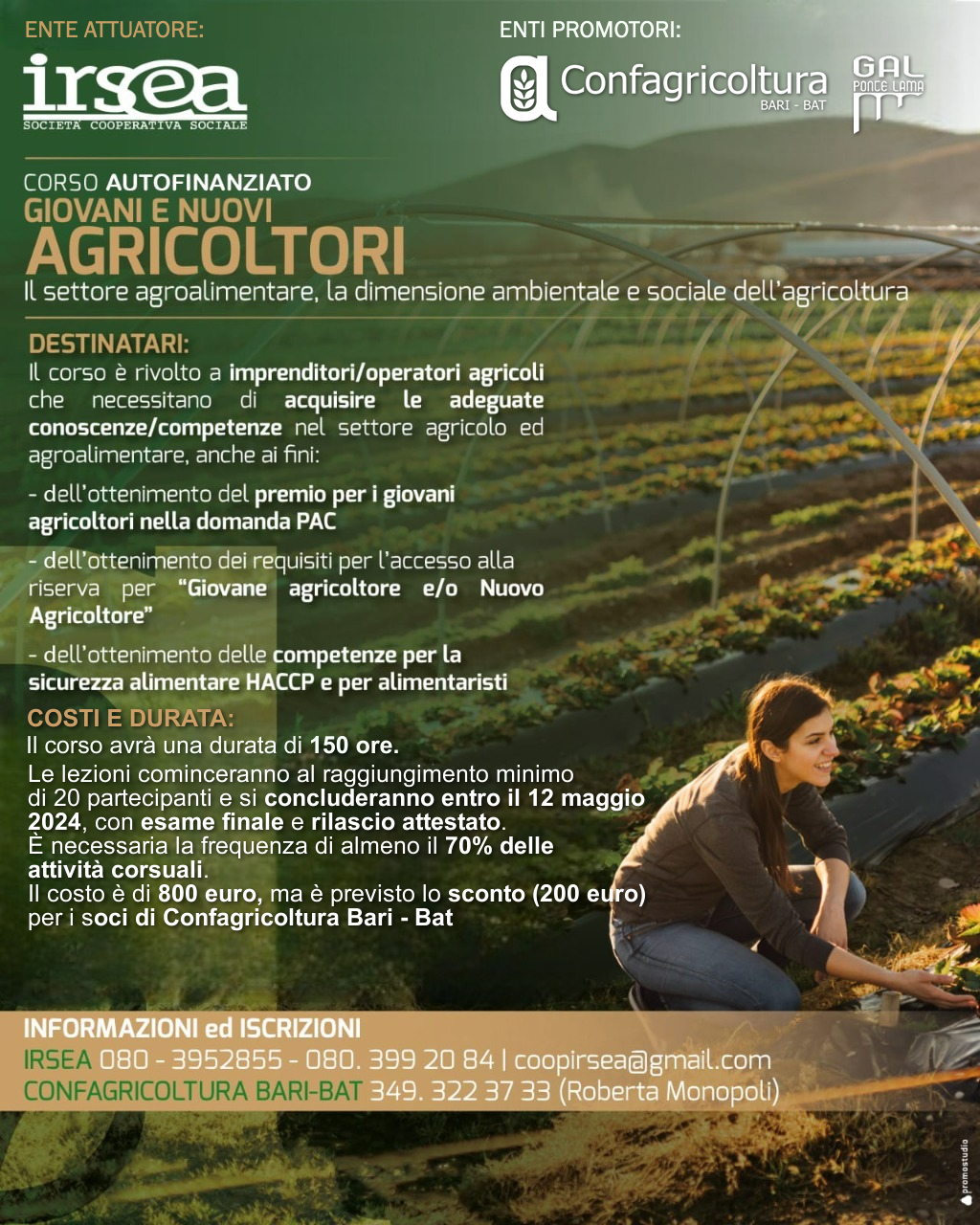 Le lezioni cominceranno al raggiungimento minimo di 20 partecipanti e si concluderanno entro maggio 2024.