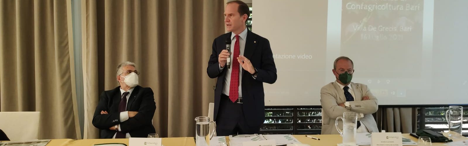 Pac, Psr, tecnologia, innovazione: sono solo alcuni dei temi affrontati dal presidente di Confagricoltura Bari-Bat, Michele Lacenere, durante l’Assemblea che si è svolta questa mattina a Bari, in Villa de Grecis, alla presenza del presidente nazionale dell’organizzazione, Massimiliano Giansanti, del governatore pugliese Michele Emiliano, del direttore di Confagricoltura, Francesco Postorino, e del direttore di Confagricoltura Bari-Bat, Vincenzo Villani, e in collegamento online con l’assessore regionale all’Agricoltura, Donato Pentassuglia.