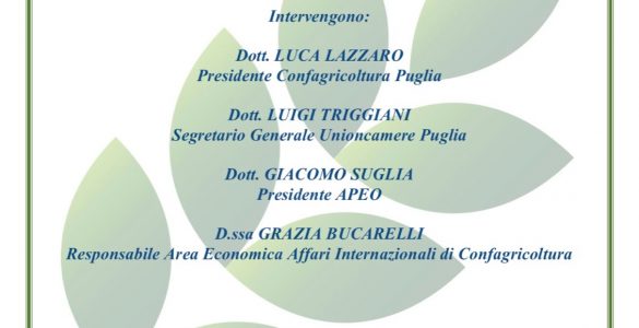 Esportare prodotti agricoli pugliesi: come, cosa, dove? A queste domande risponderà venerdì 20 settembre Grazia Bucarelli, responsabile dell’Area Economica Affari Internazionali di Confagricoltura, durante il...