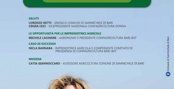 Il prossimo 8 marzo, giornata internazionale della donna, Confagricoltura Bari-Bat e il Comune di Sammichele di Bari organizzano un incontro su “Donne in agricoltura: criticità e opportunità”. L’appuntamento è alle 18 e...