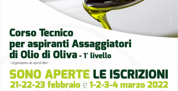 L’OP Aproli Bari organizza un Corso tecnico di analisi sensoriale per aspiranti assaggiatori di olio d’oliva. Il corso, della durata di 35 ore, si svolgerà nei giorni 21 – 22 – 23 febbraio e 1 – 2 -3 -4...