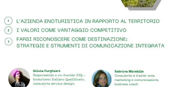 Dopo il positivo riscontro ottenuto con il corso “Enoturismo: promuovere il prodotto e il territorio” e sollecitati da molteplici richieste di approfondimento, vi proponiamo un calendario di appuntamenti finalizzati ad...