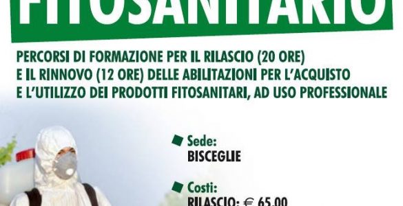 Irsea, società accreditata con la Regione Puglia, organizza dal 24 al 28 settembre un percorso di formazione per il rilascio (20 ore) e il rinnovo (12 ore) delle abilitazioni per l’acquisto e l’utilizzo dei...