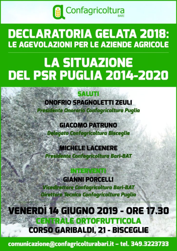 Declaratoria gelate 2018 e Psr 2014-2020, importante incontro domani a Bisceglie