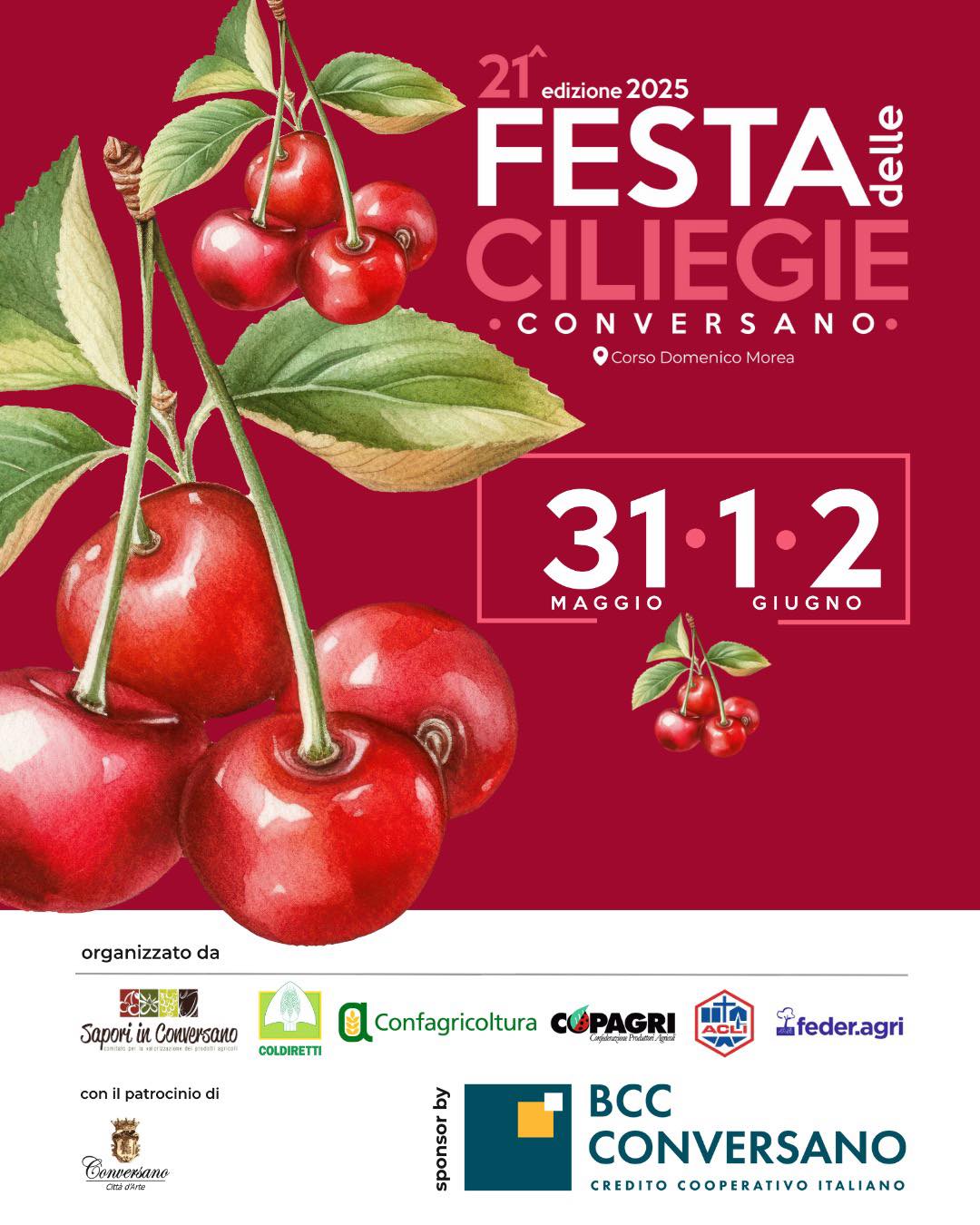 Anche quest’anno Confagricoltura Bari- Bat sarà presente alla Festa delle Ciliegie che si terrà a Conversano, dal 31 maggio al 2 giugno in Corso Domenico Morea, con uno stand dedicato.