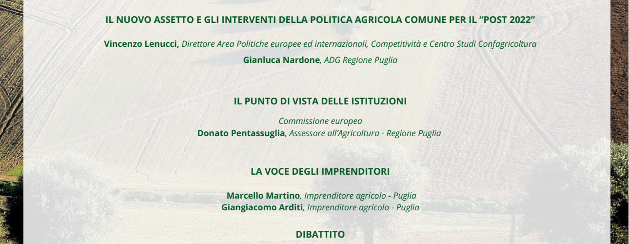 “La riforma della Pac e gli effetti per la produzione agricola pugliese”, webinar organizzato da Confagricoltura