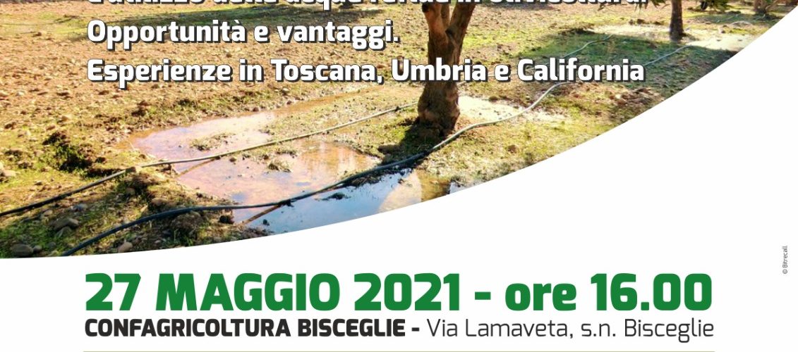 E’ il tema del webinar su “L’utilizzo delle acque reflue in olivicoltura. Opportunità e vantaggi. Esperienze in Toscana, Umbria e California”; organizzato da Confagricoltura Puglia in collaborazione con Confagricoltura Bari-Bat.