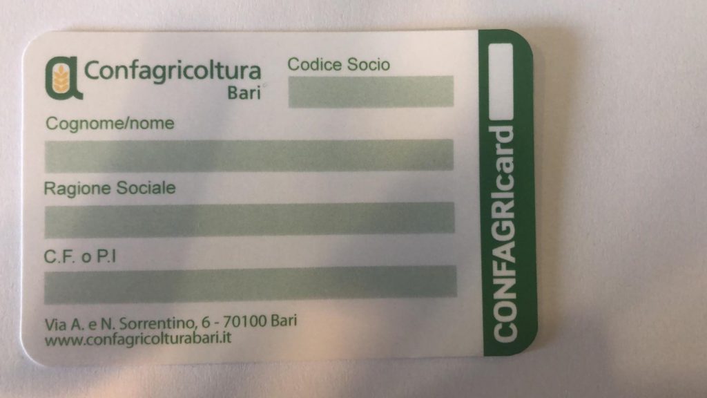 Nasce la nuova tessera per i soci di Confagricoltura Bari, ecco vantaggi e agevolazioni