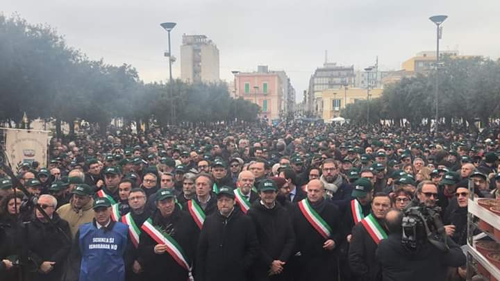 Migliaia di agricoltori sono scesi in piazza questa mattina a Monopoli anche con i trattori per sollecitare interventi concreti e immediati contro il dilagare del batterio della Xylella che sta devastando gli olivi in Puglia e ha ormai raggiunto anche la provincia di Bari con focolai individuati nelle campagne di Monopoli.