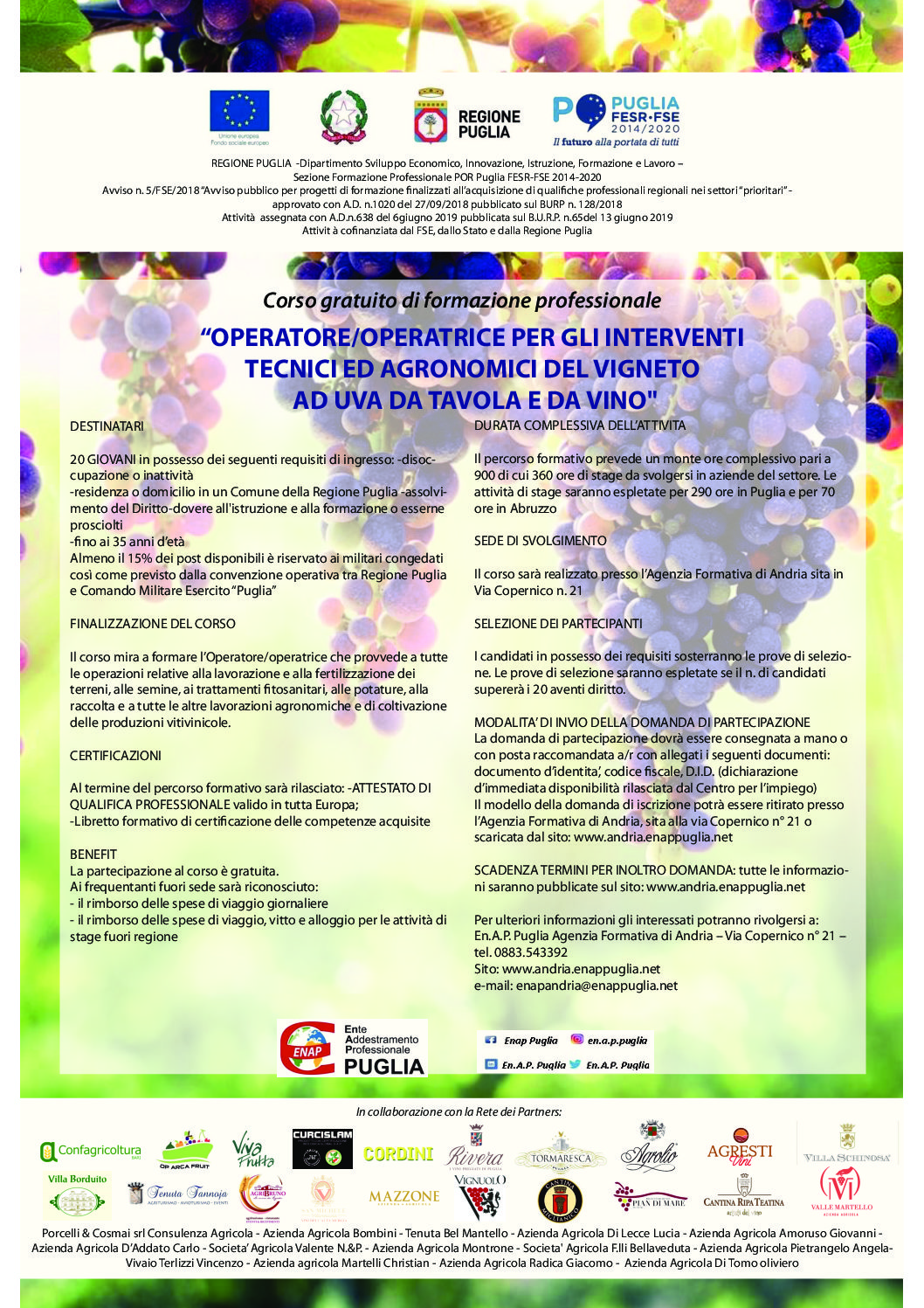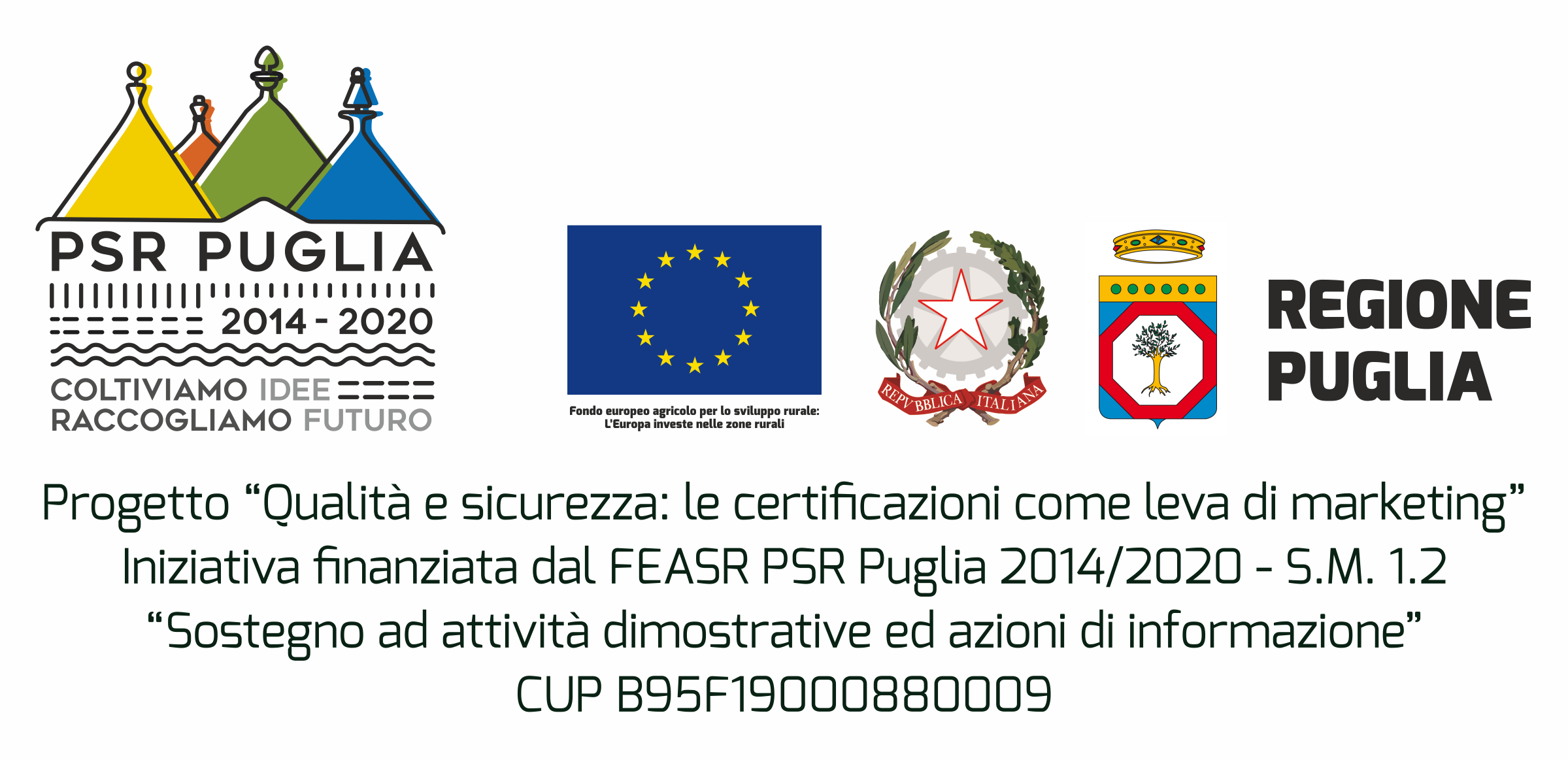 Il progetto informativo dal titolo “Qualità e Sicurezza: le certificazioni come leva di marketing” finanziato dalla sottomisura 1.2 del PSR Puglia 2014/2020, si propone di incrementare le competenze e conoscenze degli operatori agricoli pugliesi ed in particolare dei giovani imprenditori agricoli.