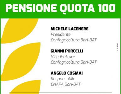 Saranno presenti il presidente di Confagricoltura Bari-Bat, Michele Lacenere, il vicedirettore Gianni Porcelli e il responsabile ENAPA, Angelo Cosmai. Un incontro importante che servirà ai soci di Confagricoltura Bari-Bat e a tutti i cittadini a dissolvere ogni dubbio sulle novità normative. Per confermare la prenotazione è possibile inviare una e-mail a comunicazione@confagricolturabari.it, oppure chiamare al numero 349.3223733. “Un appuntamento importante per fornire informazioni e strumenti utili alla cittadinanza e a tutti coloro che sono interessati a Quota 100”, commenta il presidente Lacenere.