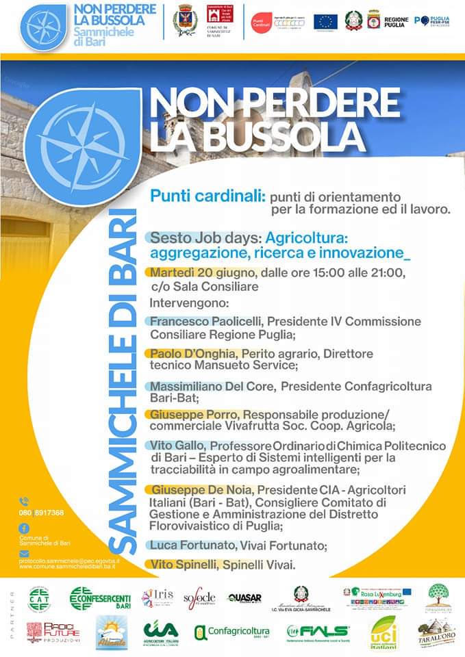 Si terrà martedì 20 giugno, dalle ore 15:00 alle ore 21:00 presso la Sala Consiliare del comune di Sammichele di Bari.