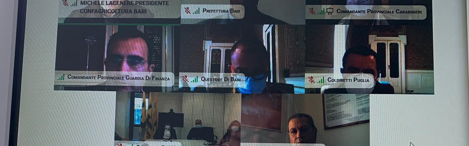 Si è tenuto oggi un incontro, in videoconferenza, con la Prefettura di Bari e le forze dell’ordine avente come tema la sicurezza nelle campagne. Il presidente di Confagricoltura Bari-Bat, Michele Lacenere ha sottolineato la necessità di un presidio costante, negli agri della provincia, perseguibile anche con l’uso delle forze di polizia e, soprattutto, con specifico incarico assegnato alla polizia provinciale.