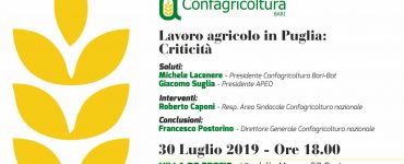 Comunicazione “Lavoro agricolo in Puglia: criticità”: il nuovo incontro organizzato da Confagricoltura Bari 29 luglio 20191 min.