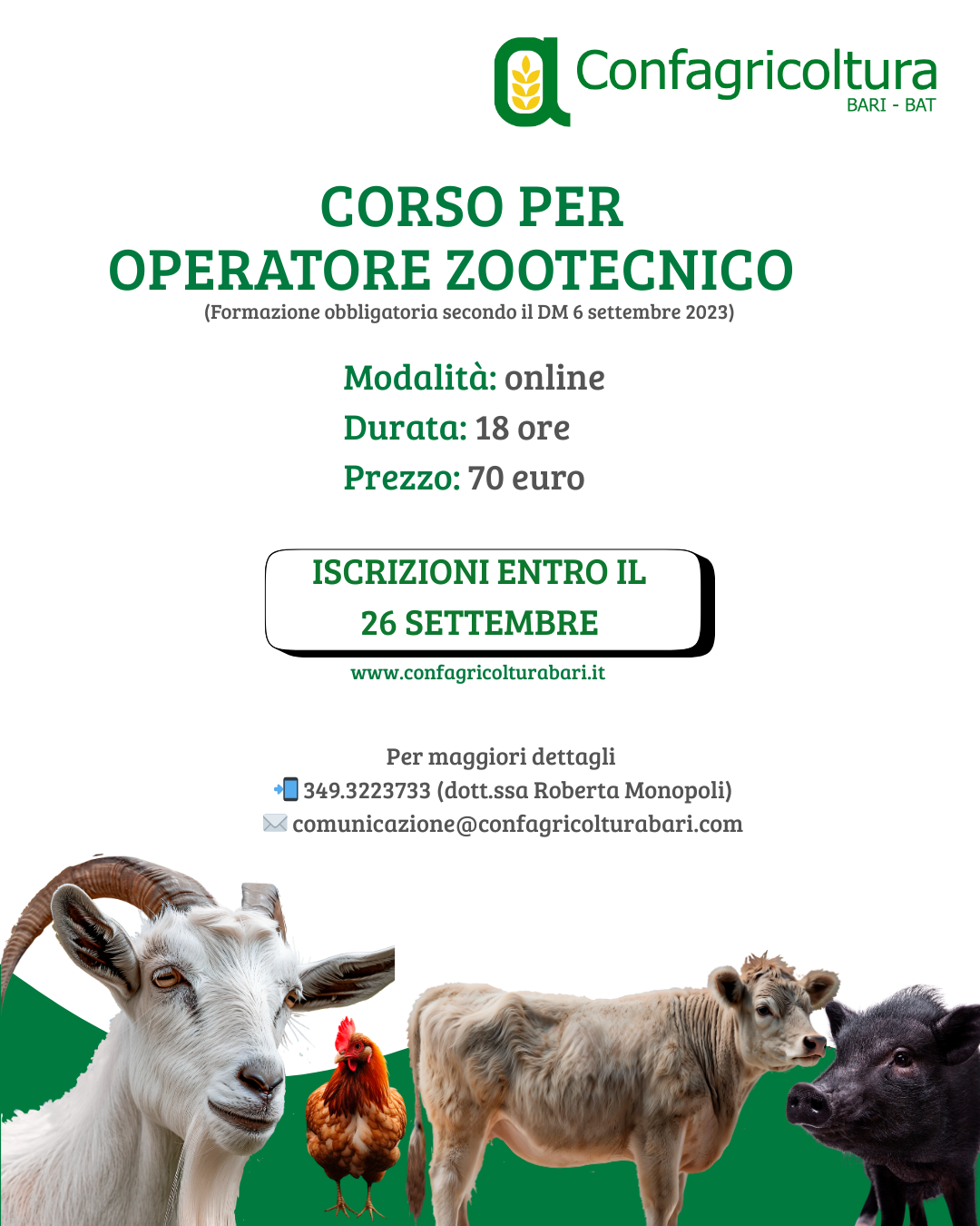 Il corso è rivolto a operatori e trasportatori di bovini, equini, ovini, caprini, suini e avicoli.