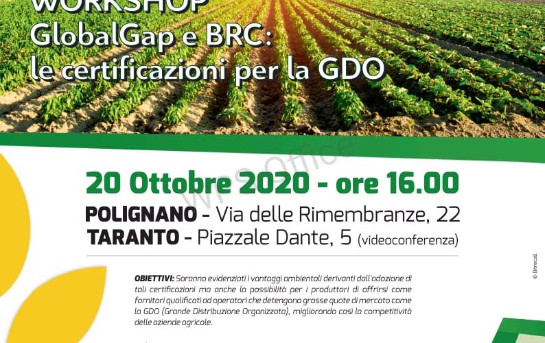 “GlobalCap e BRC: le certificazioni per la Gdo” è il titolo dell’evento. Saranno evidenziati i vantaggi ambientali derivanti dall’adozioni delle certificazioni ma anche la possibilità per i produttori di offrirsi come fornitori qualificati ad operatori che detengono grosse quote di mercato come la GDO, migliorando così la competitività delle aziende agricole. Dopo i saluti del presidente di Confagricoltura Bari-Bat, Michele Lacenere, è previsto l’intervento del relatore Matteo Potenza, esperto certificazioni CSQA. La partecipazione al workshop è gratuita ed è aperta a imprenditori agricoli e/o dipendenti di aziende agricole.